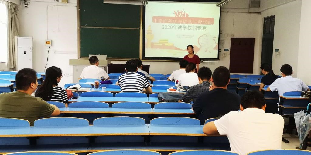 为进一步加强师德建设,提升广大教师的教学能力和业务水平,为全省教育系统2020年教学技能竞赛选拔优秀人才,7月12日,计算机与信息工程学院在A06号楼206教室举办了2020年度教学技能竞赛。18名教师报名参加本次比赛,副院长孙高飞、李阳以及学院教学督导成员作为评委进行现场点评并打分。