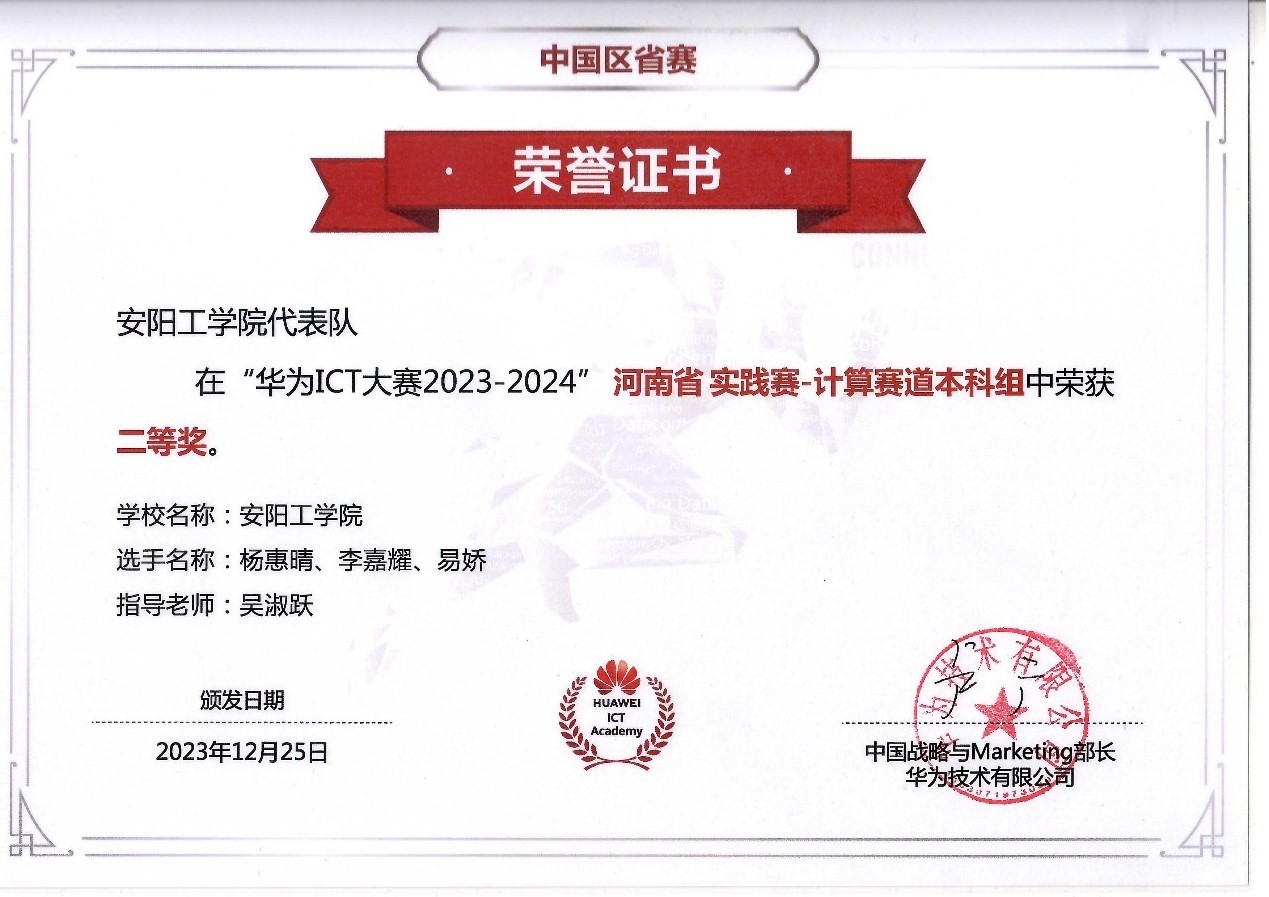 第八届华为ICT大赛于2023年10月份启动,是全国普通高校大学生56个竞赛排行榜项目名单之一,中国高等教育学会认可的含金量高、参赛价值大的国家级竞赛项目。此次大赛实践赛包含四条赛道,分别是网络赛道、云赛道、计算赛道和昇腾AI赛道。在久久久久亚洲精心组织下,经过近三个月的赛程,大赛经过比拼,我院学子再获佳绩,二等奖一项、三等奖三项(计算赛道两项、网络赛道一项),其中昇腾AI是此次大赛新增赛道,全国共有30组入围决赛,我院成功入围该赛道总决赛。