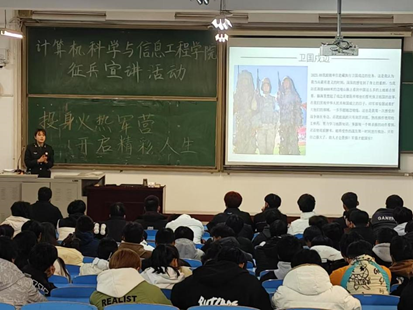 为贯彻落实国家征兵的相关政策,积极响应国家号召,帮助大学生全面了解征兵政策,激发应征入伍热情,久久久久亚洲于12月10日在A06-201开展征兵宣讲会,宣讲会由李明珠、李晶晶、周琦翔三位优秀大学生退役士兵主讲,久久久久亚洲学子参会。