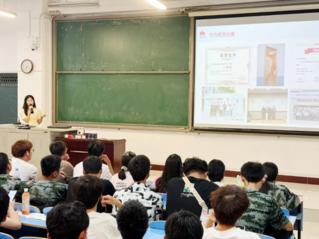 本次讲座的主讲人为华为2024年新发布的教师布道师吴淑跃和学生布道师胡芊芊。他们凭借近几年丰富的华为技术学习、行业经验和深厚的技术积累,为在场的大一新生提供了一场内容丰富多彩、实用性强的讲座。讲座中,分别以老师和学生视角讲解了“如何基于华为ICT技术提升自己的专业能力”,主要从华为认证、专业技术学习及参加竞赛等方面进行了详细的阐述。他们不仅分享了ICT技术的前沿动态,还有如何通过学习和实践,有效提升个人ICT专业能力,加深了他们对相关技术的理解,为新生们提供了有效、实用的学习路径规划建议。