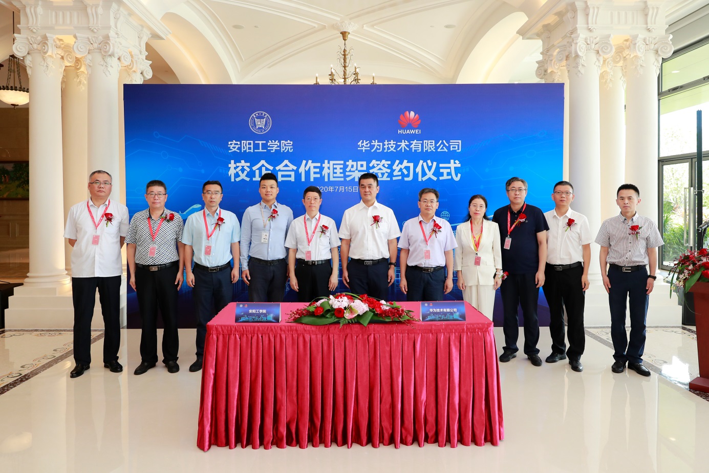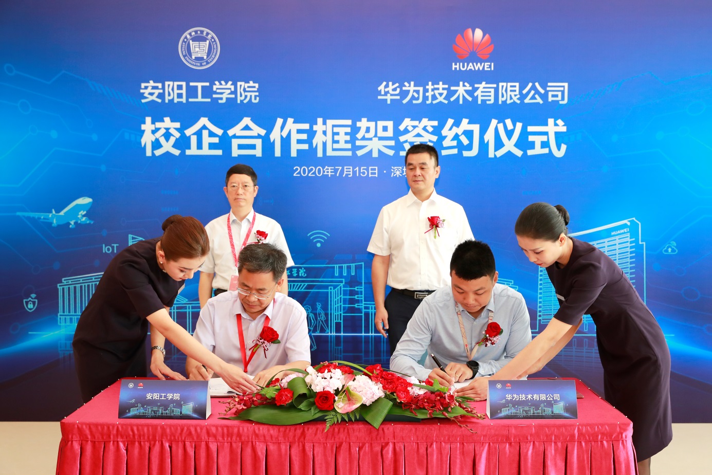 副校长郭秋平和华为公司河南政企业务部副总经理李博代表双方签署合作协议